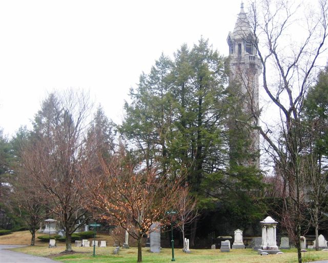 But wait! There is one more historical twist of fate, this one involving Dr. Joseph Warren, the patriot who had dispatched William Dawes on his ride on April 18, 1775. Warren died only two months later, in June, 1775, at the Battle of Bunker Hill (Breed's Hill). He was first buried by the British on the spot. Later, his body was exhumed and moved to the Granary Burying Ground in Boston, and later again, in 1824, to the family vault under St. Paul's cathedral. But that was not the last of Dr. Warren's post-mortem travels. In 1855, his remains were moved for the third and last time, and to no other than Forest Hills Cemetery! Today, William Dawes and Joseph Warren lie some 200 feet from one another, close in death as they were in life.